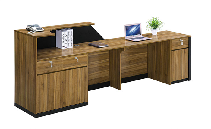前臺桌長度有1米8長的,2米4長的做的居多,也可以定做其他尺寸。桌面板厚度為2.5cm,前臺桌采用質(zhì)優(yōu)板面,產(chǎn)品耐劃痕、耐高溫、耐污染、耐干熱、耐水蒸氣,擴(kuò)膨脹能力優(yōu),訂做板式家具廠前臺桌的顏色有很多,客戶要求來定做,也可以選擇防火板面,產(chǎn)品不僅可以做為前臺桌使用,也可以做為收銀臺使用,前臺桌上面都是帶有束線孔、主機(jī)托、鍵盤托和活動柜的,產(chǎn)品自身還帶有鎖頭,提高了產(chǎn)品的安全性。